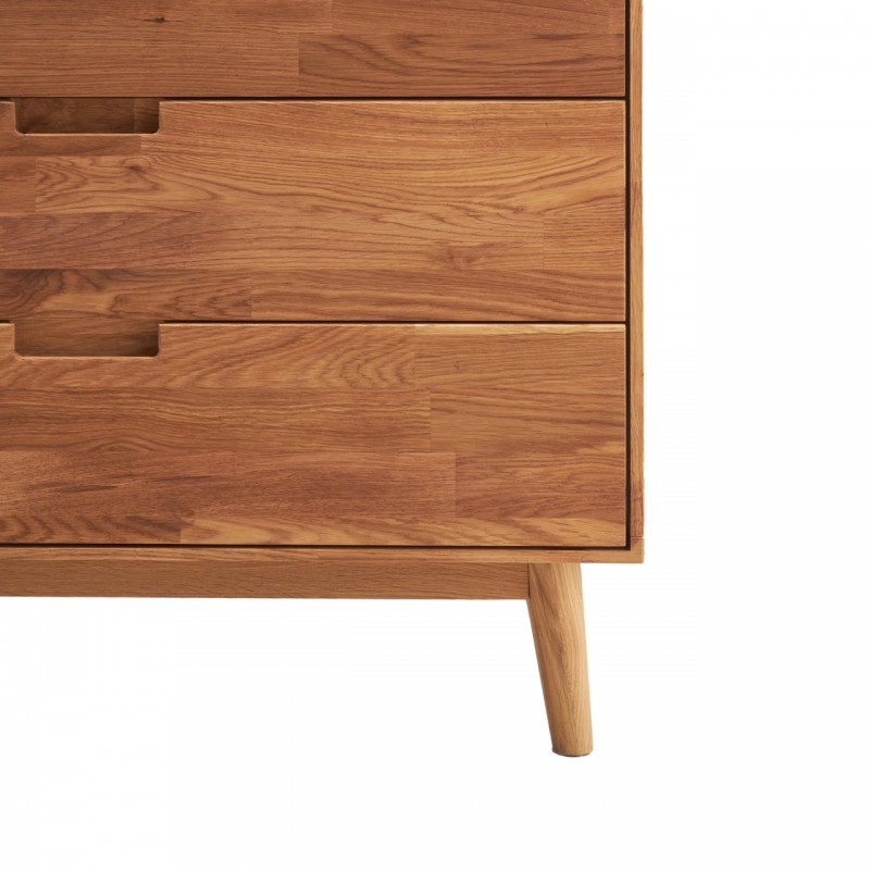 Dębowa komoda Sweden. Komoda z czterema szufladami. Dąb olejowany w naturalnym, miodowym wybarwieniu. Sprawdzi się w salonie, jadalni, sypialni, pokoju młodzieżowym.